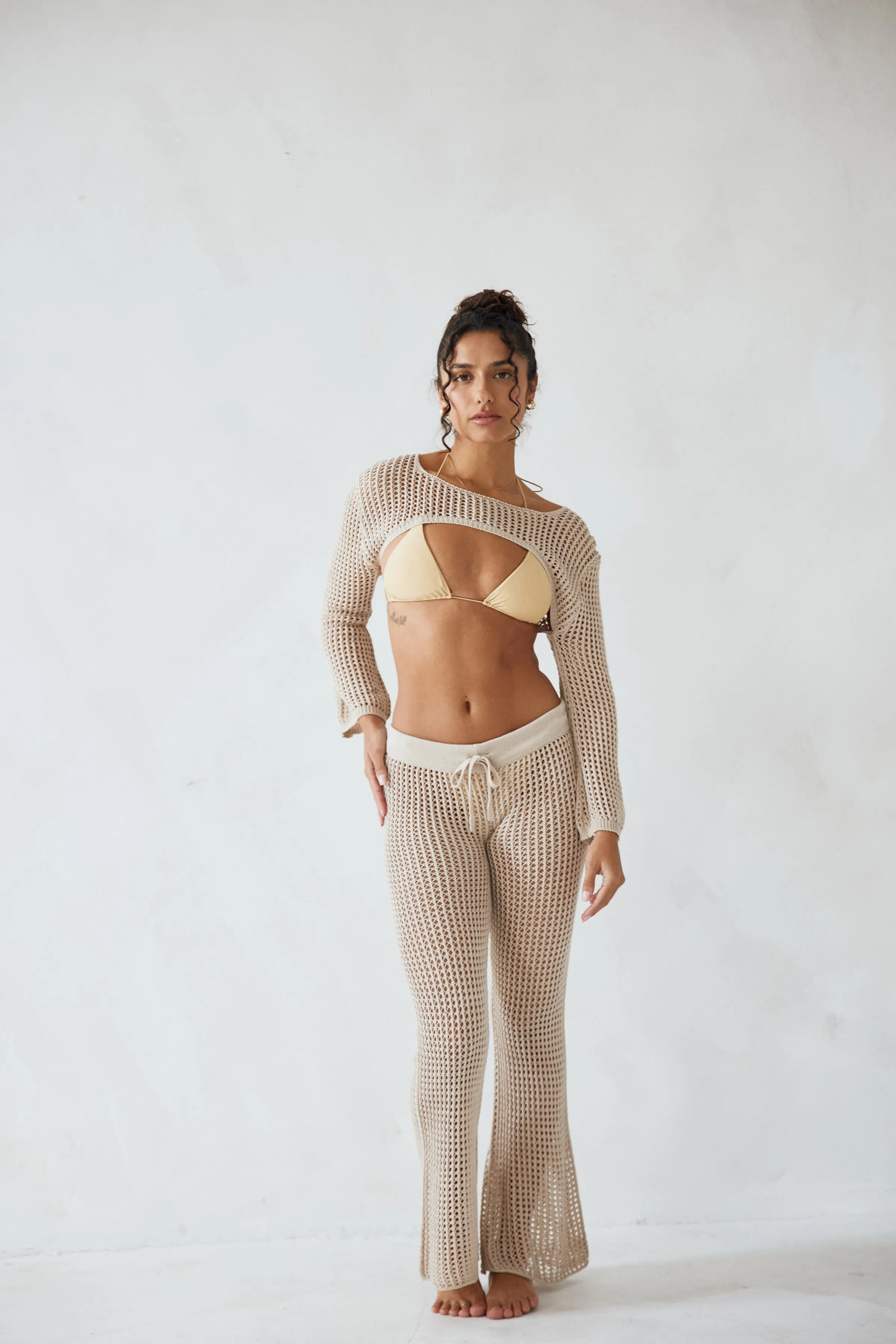 Whether you’re at the beach or at a party, the Baja Bolero is your go-to style! This airy bolero features long sleeves and is made from a soft cotton blend crotchet. Complete the look with the Baja Pant.