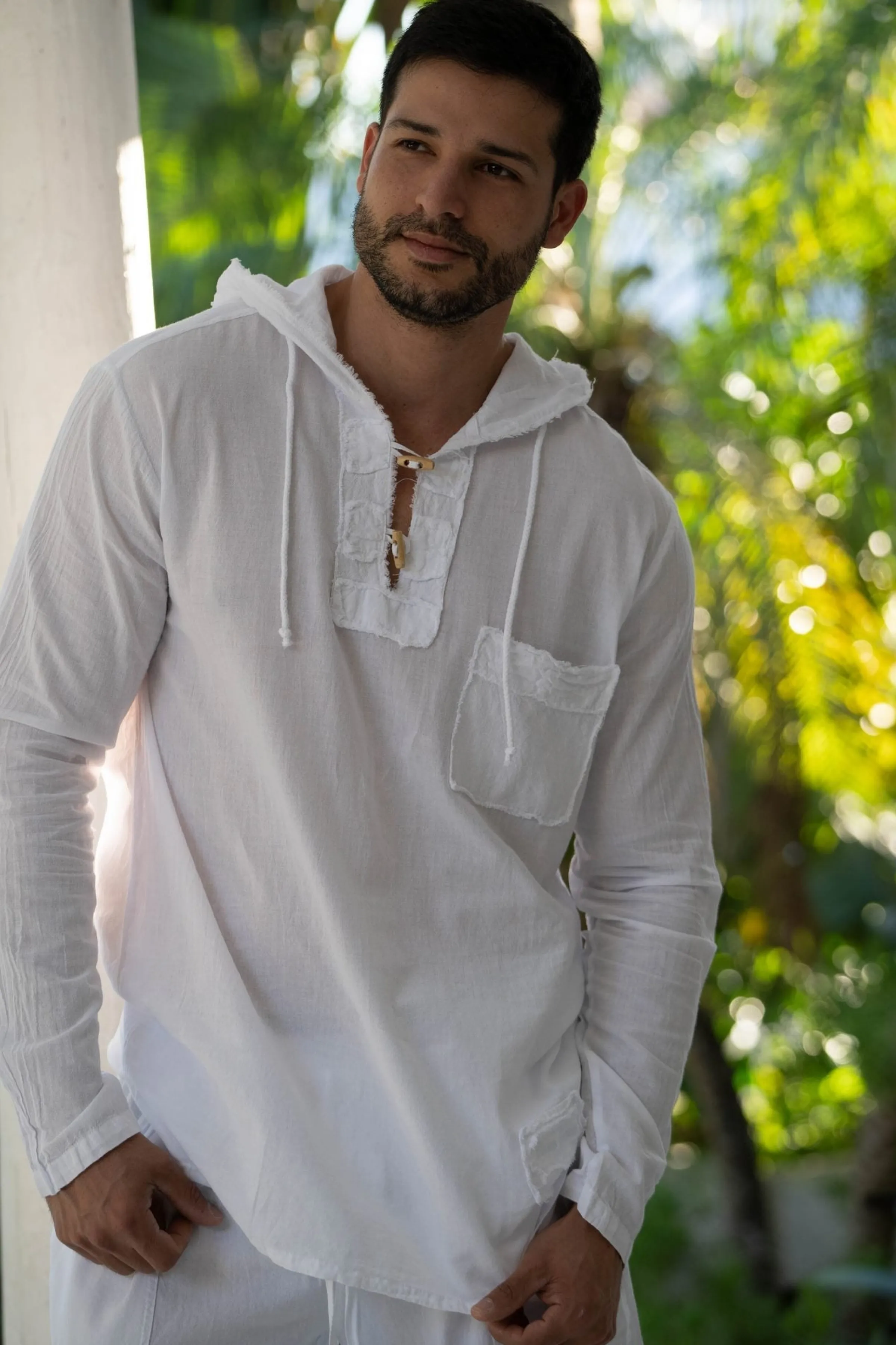 The Cannon Coconut Pullover Top is made from a high quality cotton fabric. This relaxed style features a hoodie, front pocket, and centre button detailing.