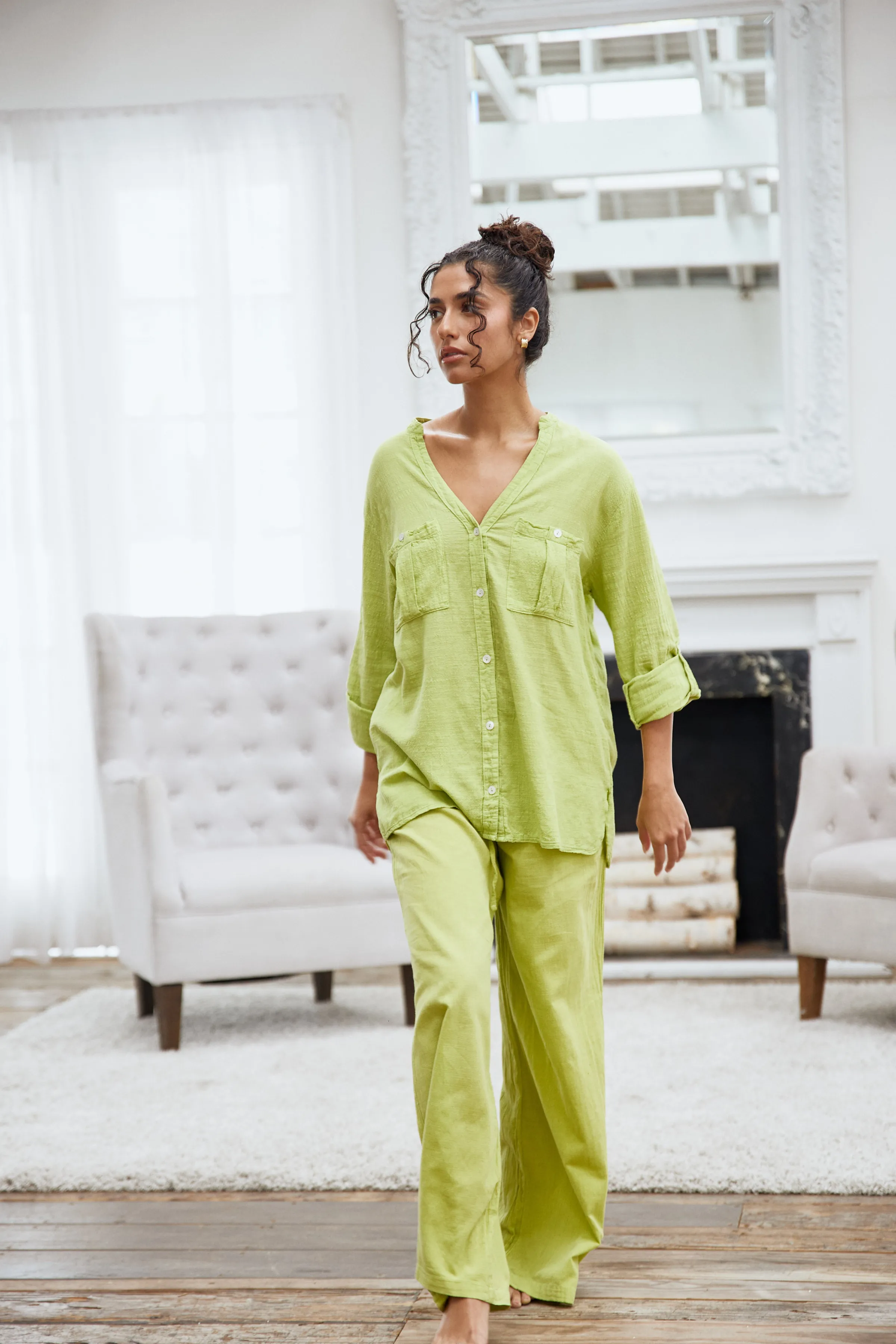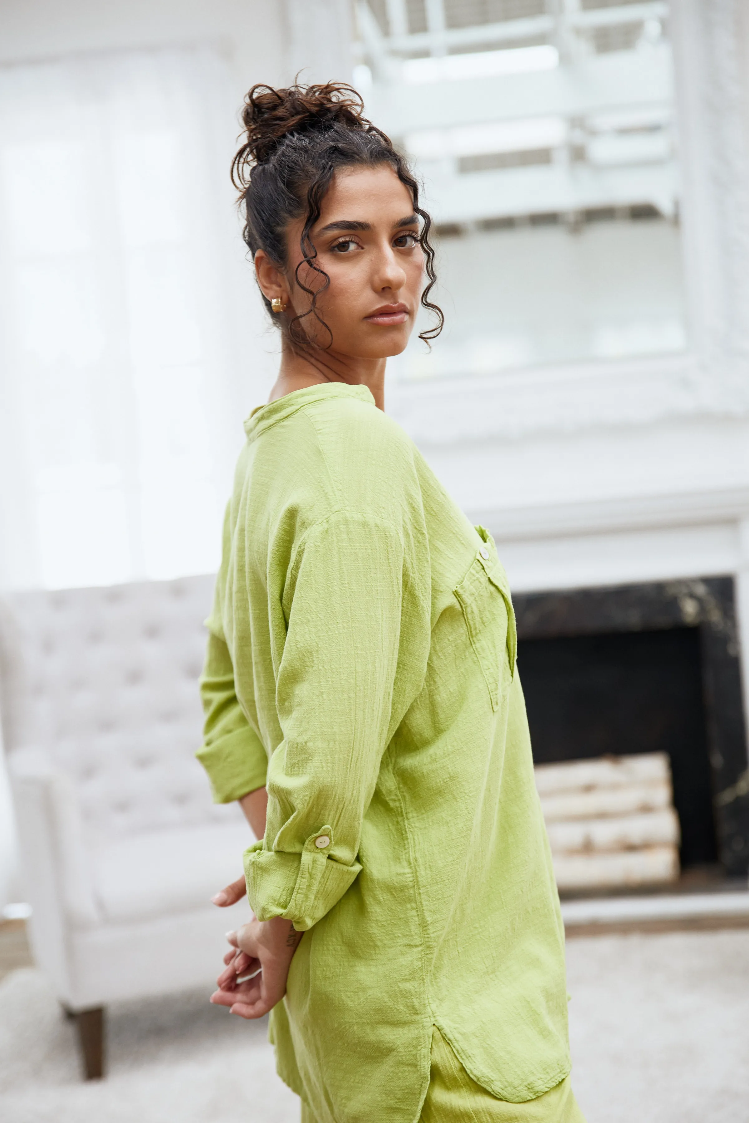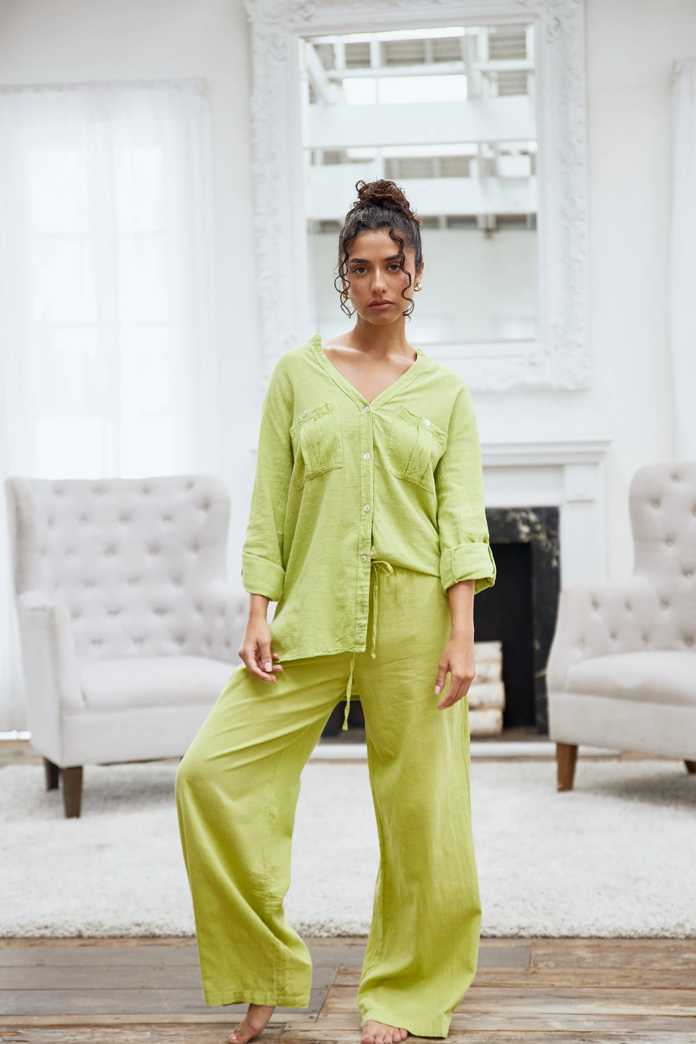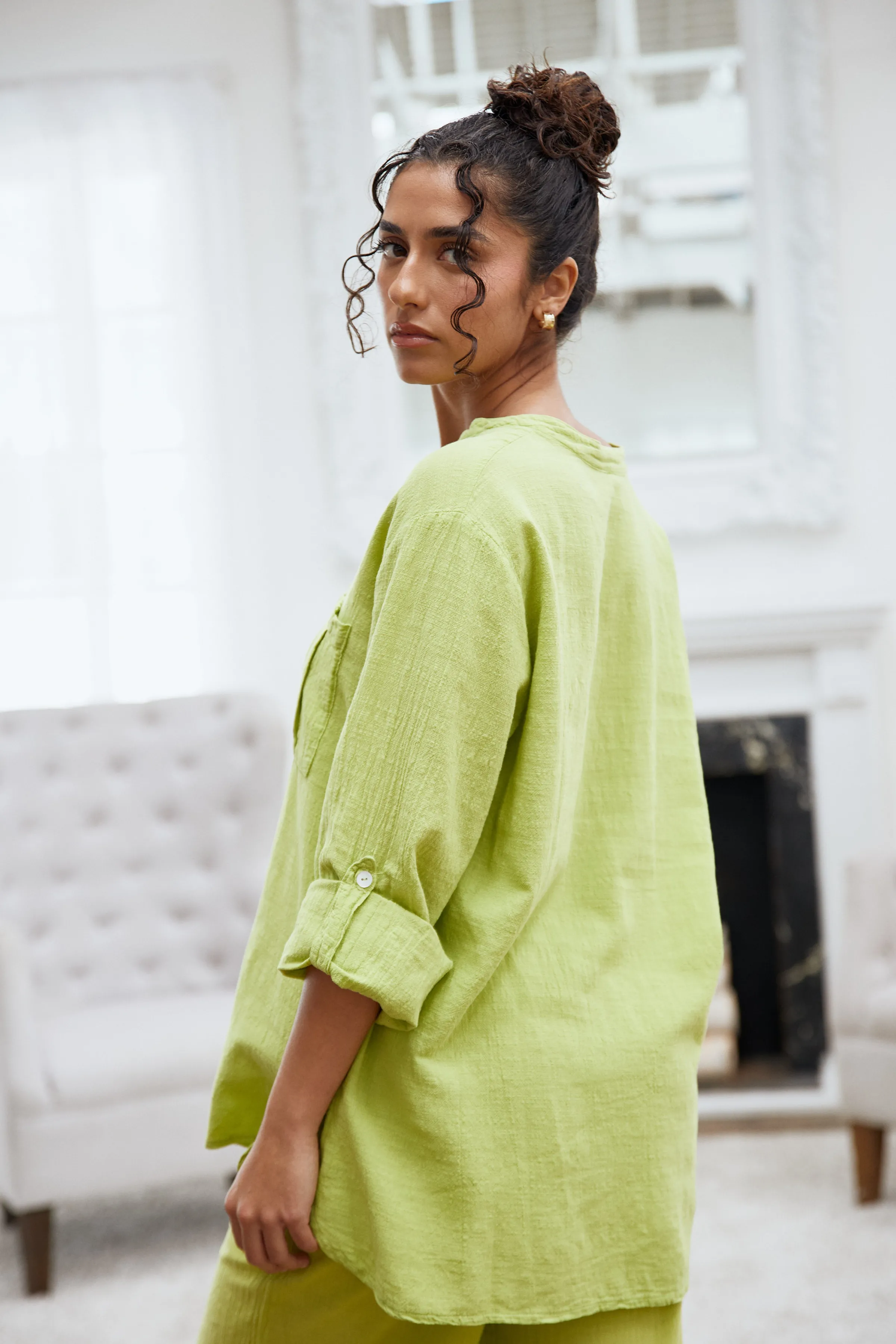 Your everyday relaxed top that can be dressed up or down! The Noa Top is made from a high-quality cotton fabric. It is a loose-fitting style designed with pockets and centre front and sleeve buttons. Styled best with our Chiara or Dasha Pants.